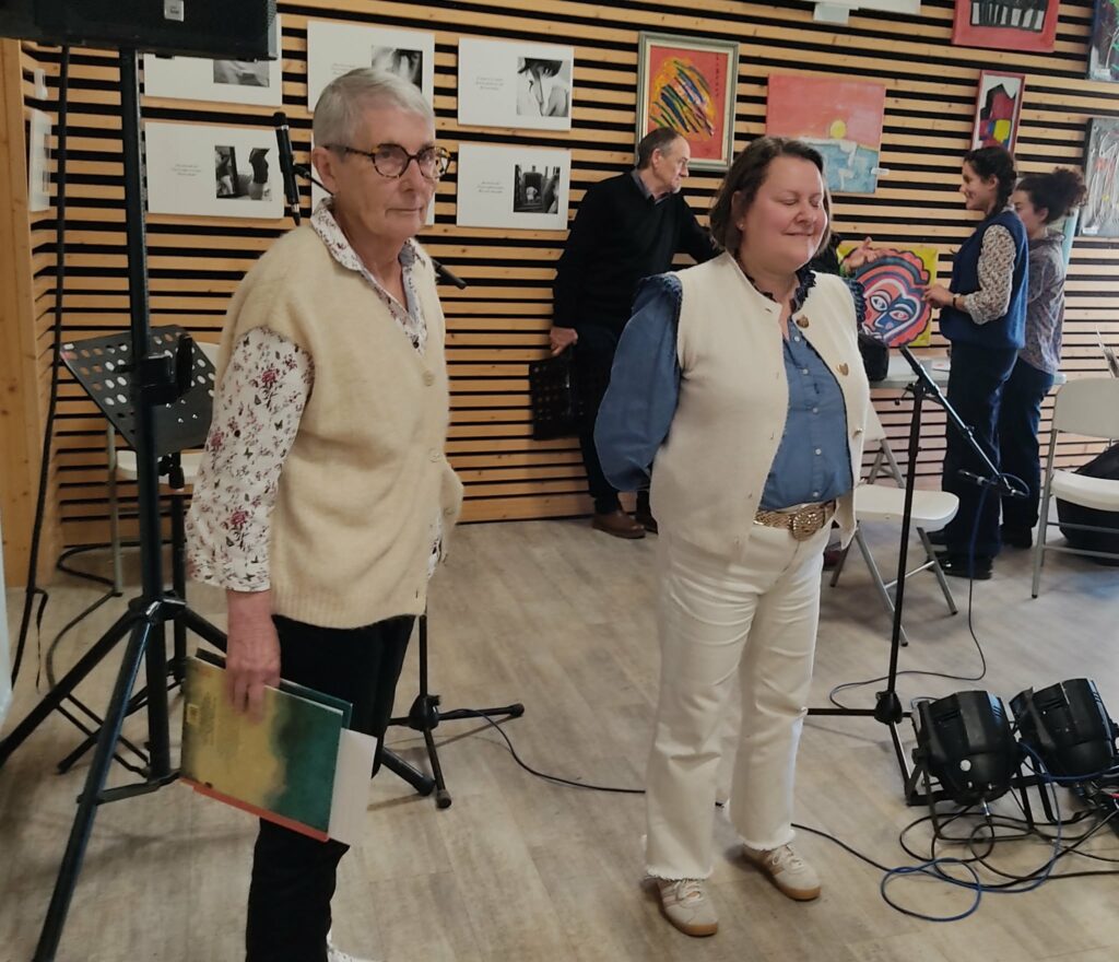 Nous étions invitées, ce vendredi soir, à raconter à Saint Just en Chevalet ; dans une salle des fêtes comble,