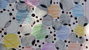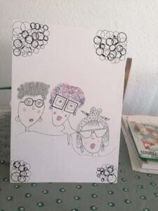 Heure du conte avec  Edith à Villerest ; la forêt de Lespinasse avec le chêne « président » mort ; les artisans d’art à StMaurice et un mur de glycines ; un nouveau resto « un peu spécial » à StMaurice ; zentangle (?)  de Maryvonne, j’adore ! ; encore un zentangle transformé en marque-pages  ; un portail décoré dans une ruelle de Villerest ;